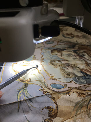 Restaurierung und Montage eines Pergamentfächers mit Pastellminiaturen.